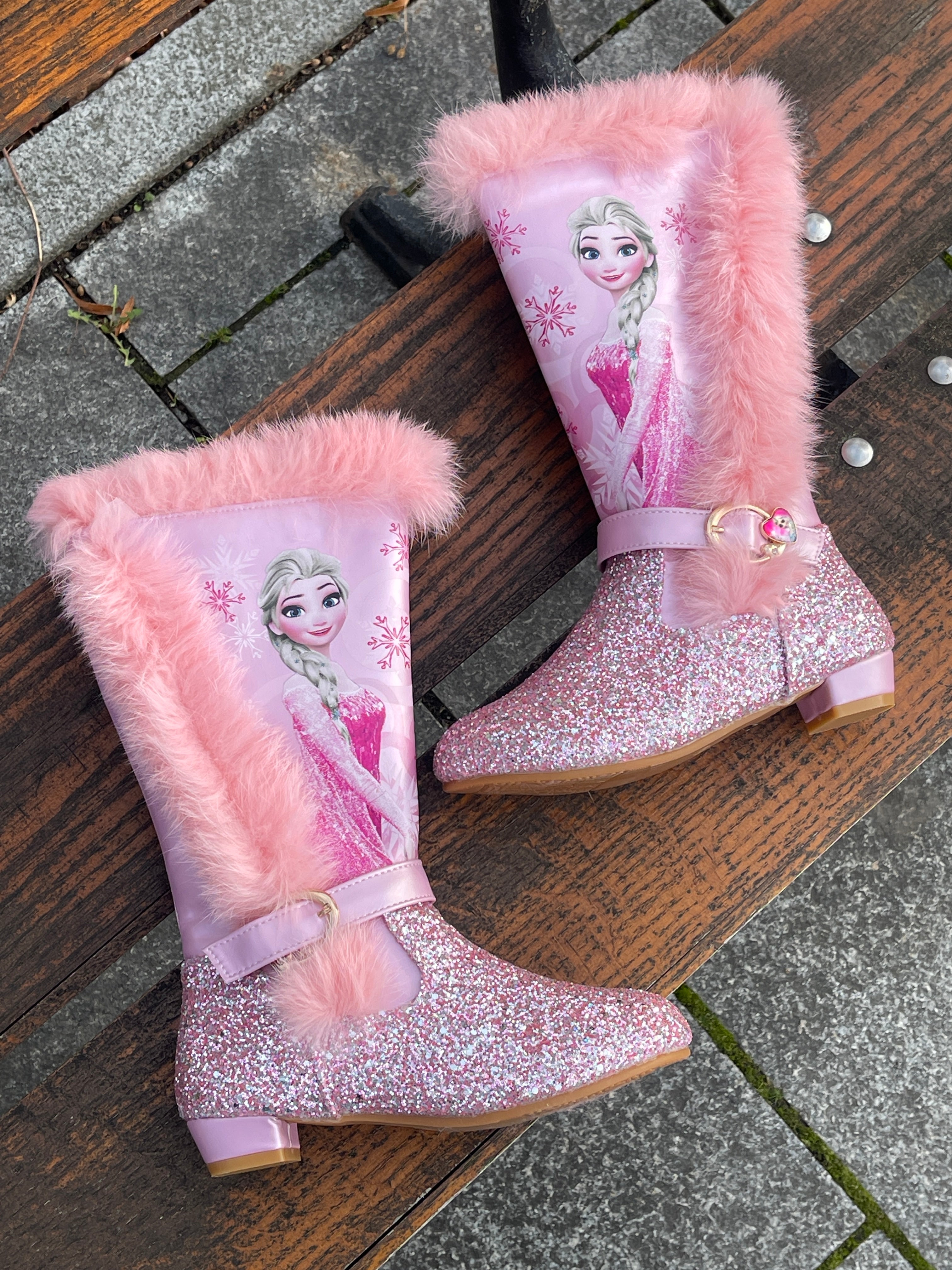 Cute Frozen style decoration combined with the comfort of boots will keep feet stylish and warm during autumn or winter.