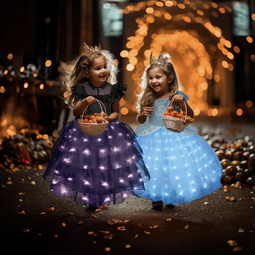 Adorned with enchanting LED lights, this dress effortlessly merges captivating style with a touch of enchantment. With every step and twirl, the lights flicker and gleam, creating a bewitching effect that will envelop your child in a spellbinding aura.