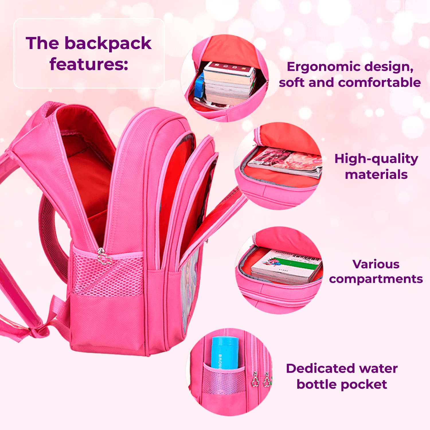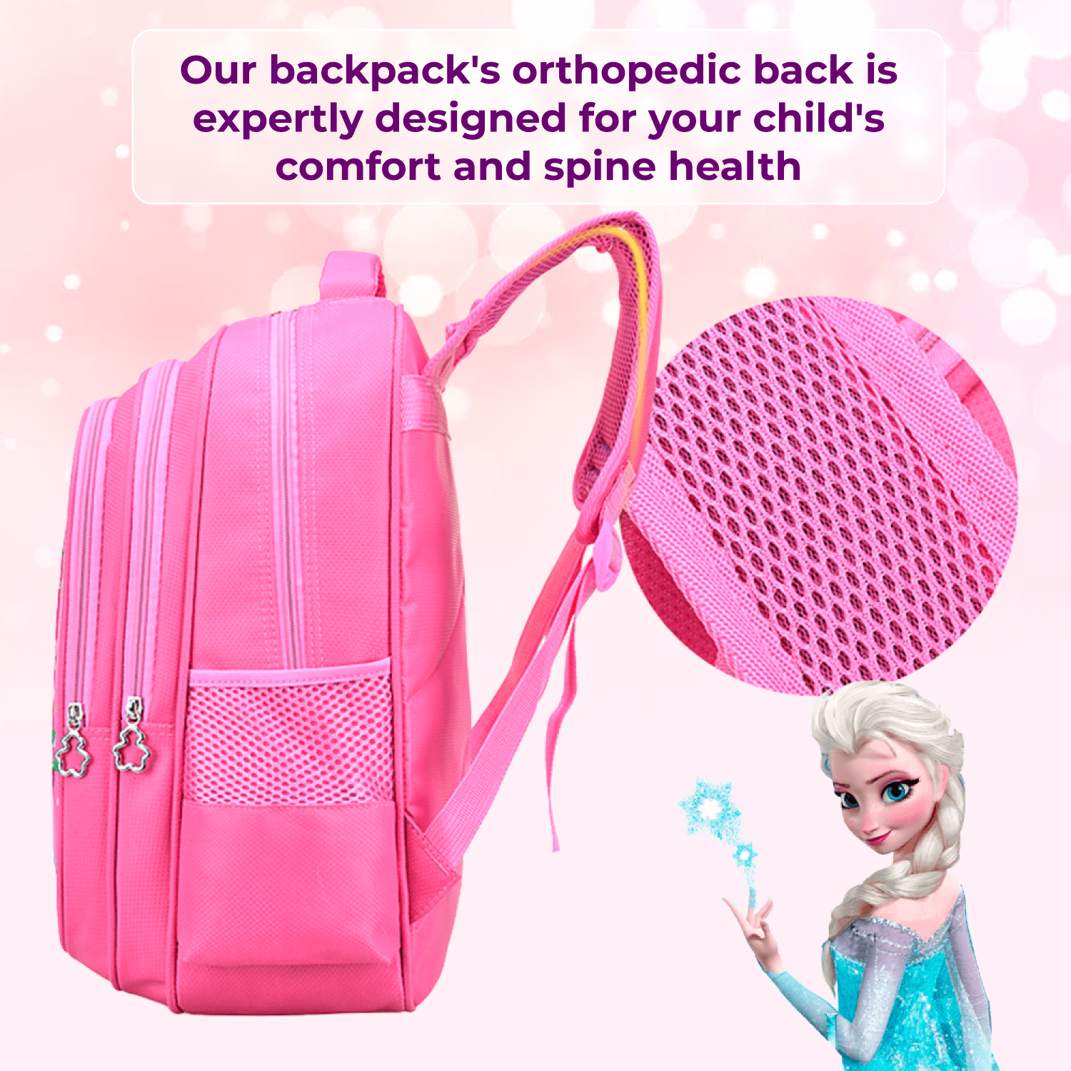 Featuring charming Elsa-themed decorations, this backpack effortlessly combines whimsical design with practicality. The vibrant colors and intricate details spark creativity and curiosity, allowing your child's imagination to flourish. Our backpack's orthopedic back is expertly designed for your child's comfort and spine health.